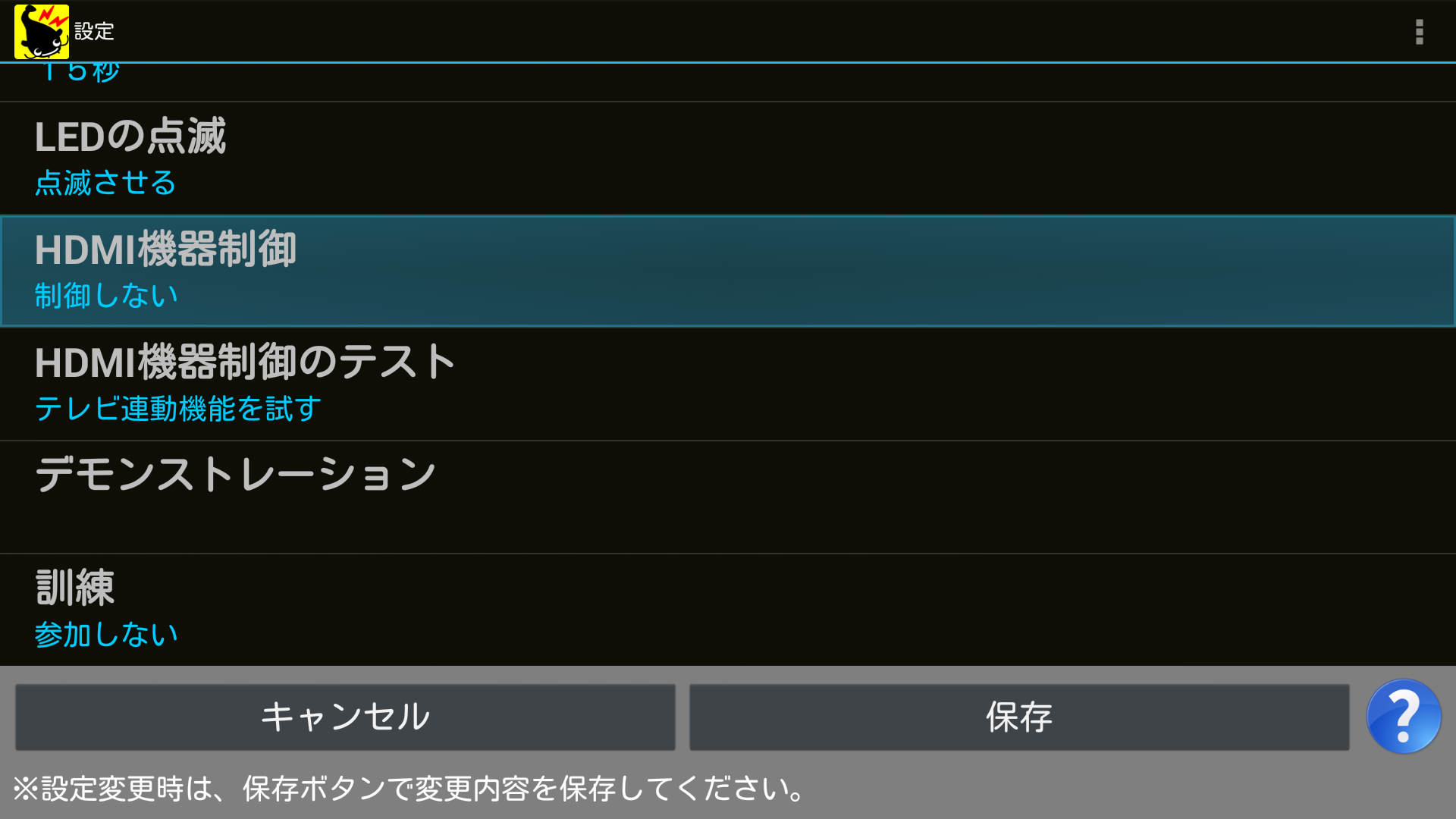 ④画面に設定の内容が反映されていれば、HDMI機器制御の設定は完了です。