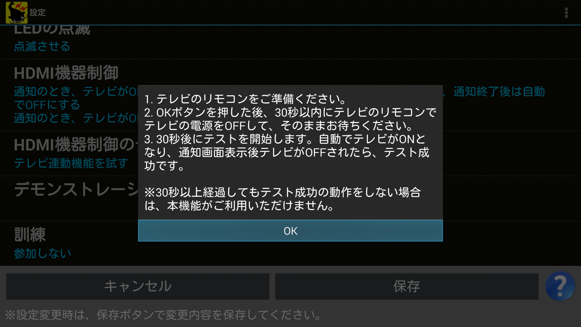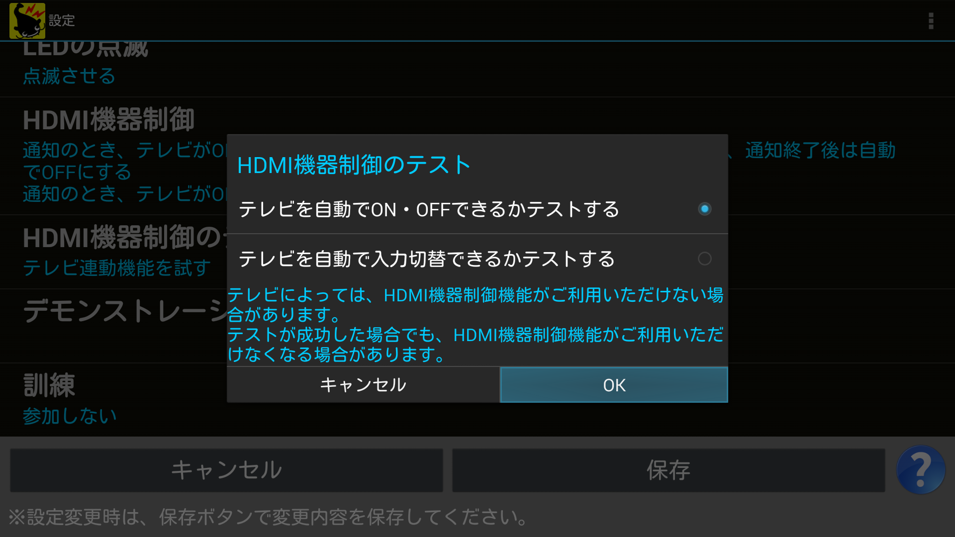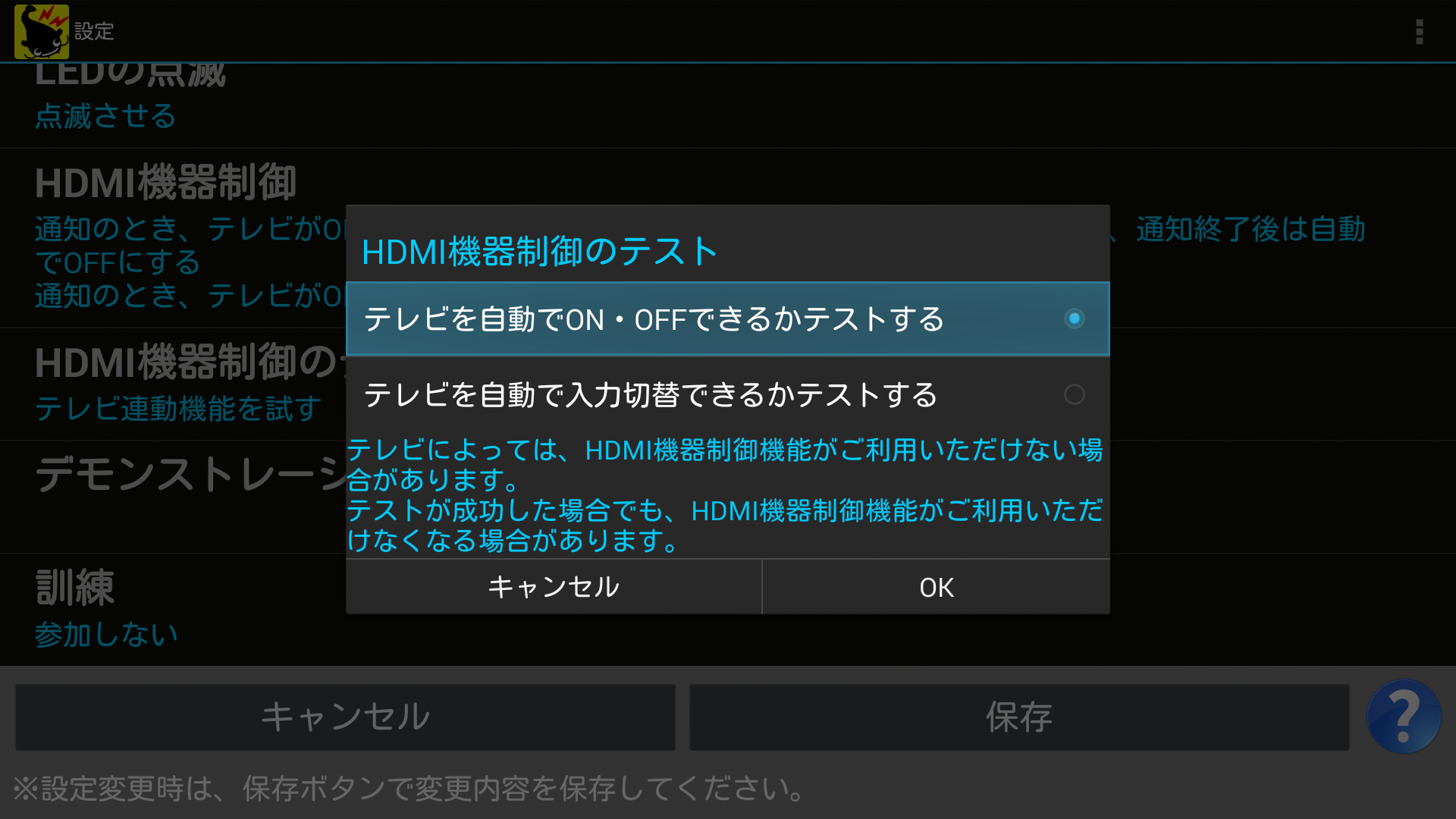 HDMI機器制御のテストが成功した場合でも、HDMI機器制御機能がご利用いただけない場合があります。