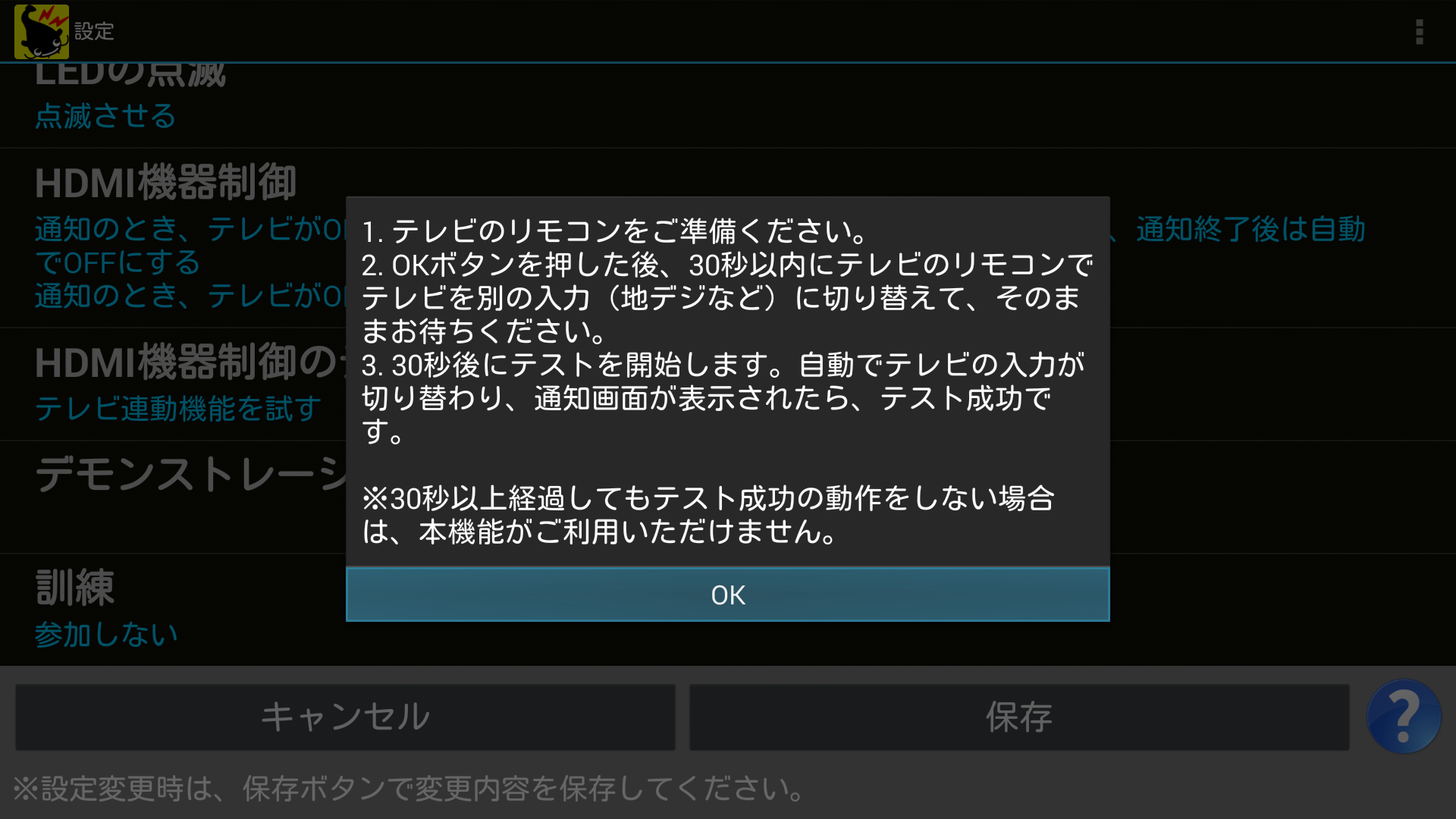 ■テレビの入力を自動で切り替えできるかテストする選択時に表示される画面
