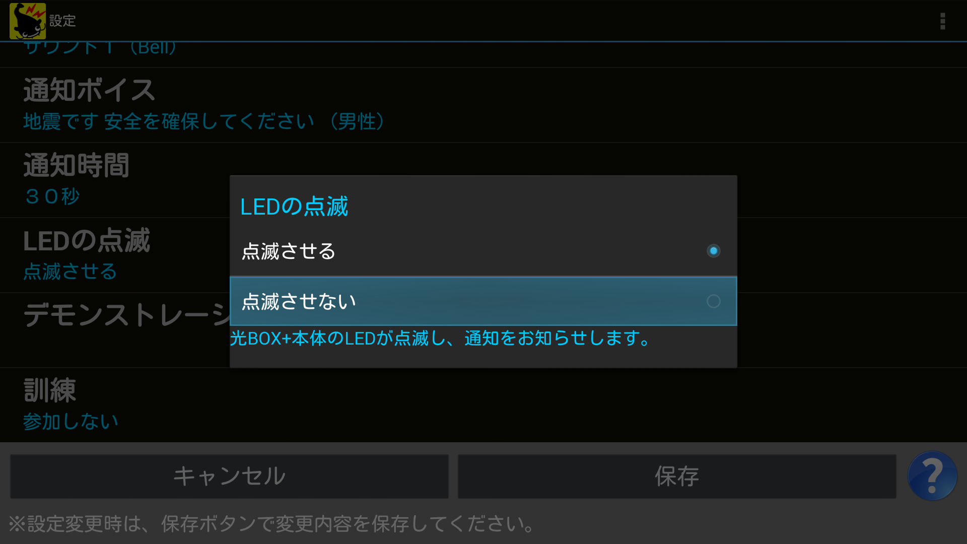 通知が来たときに光BOX+本体前面のLEDを点滅させるかの設定をします。
