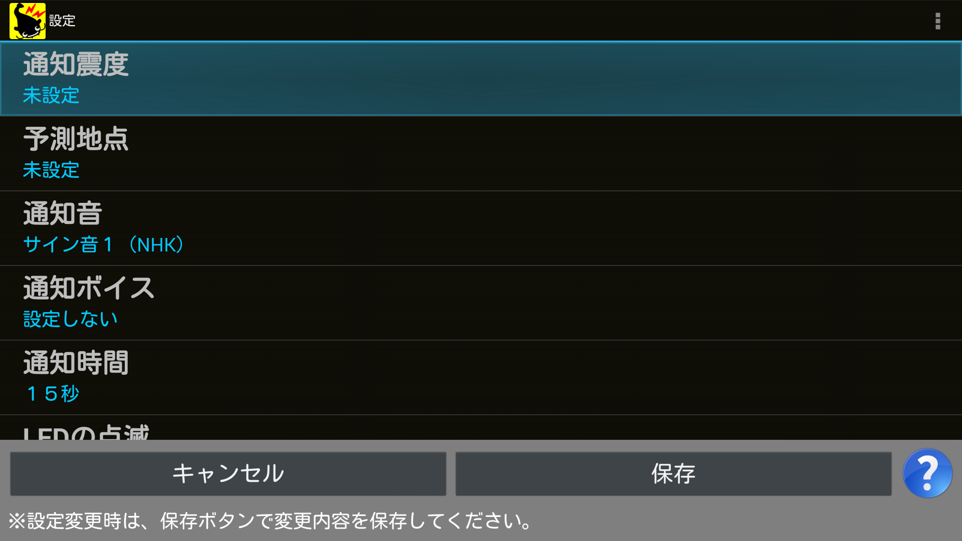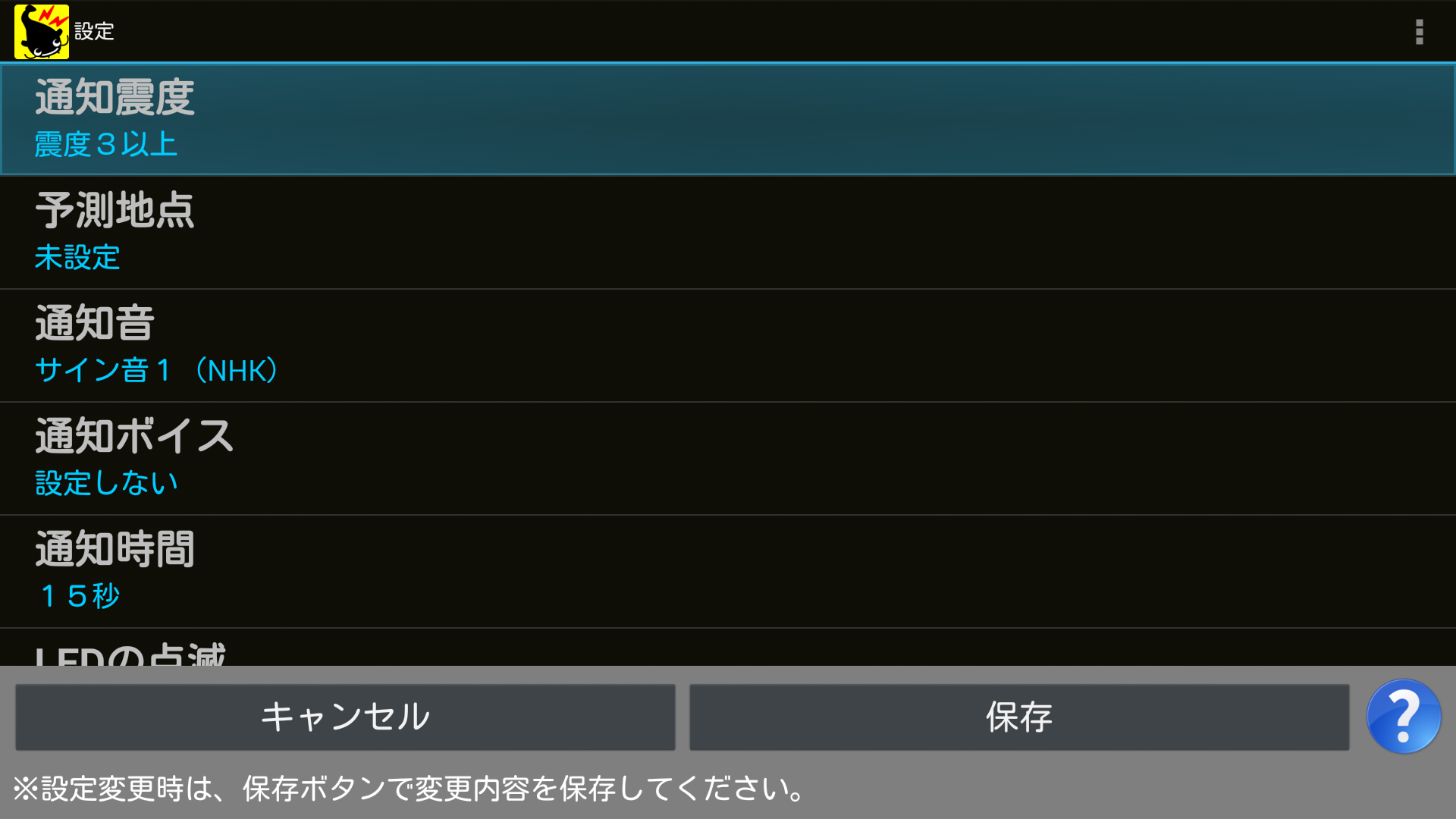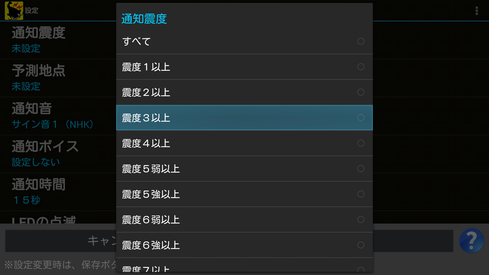 ※おすすめの通知震度は「震度3以上」です。