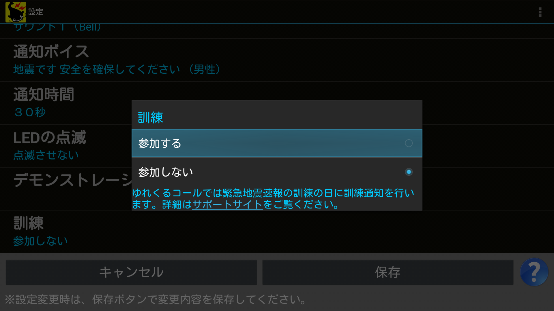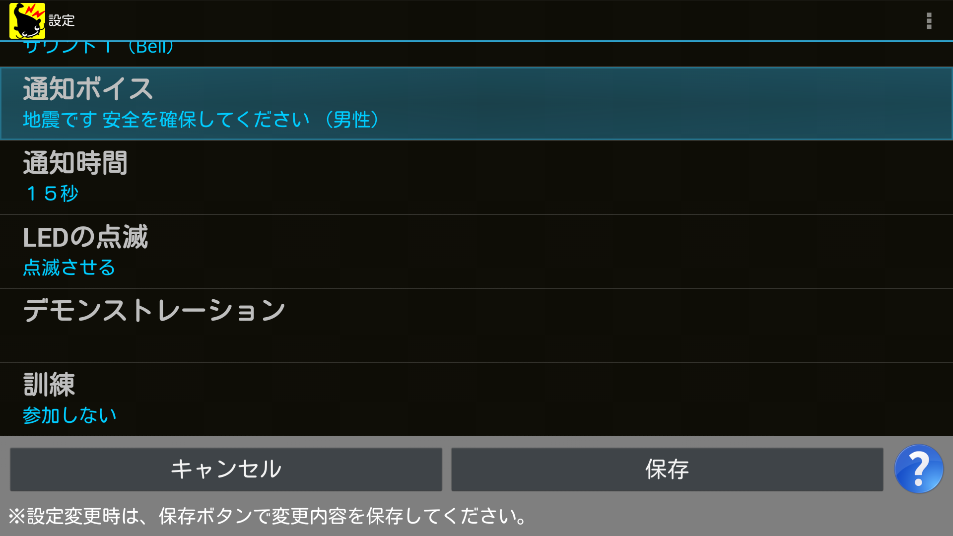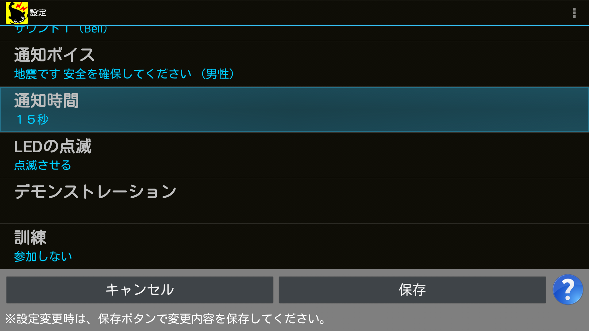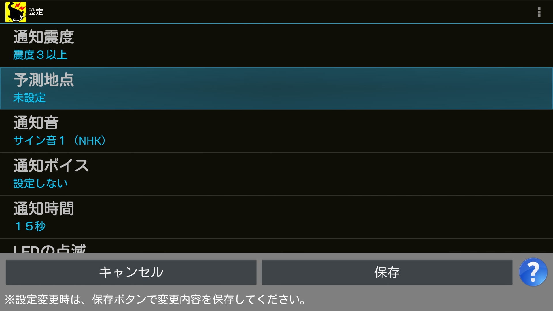 ※おすすめの通知震度は「震度3以上」です。