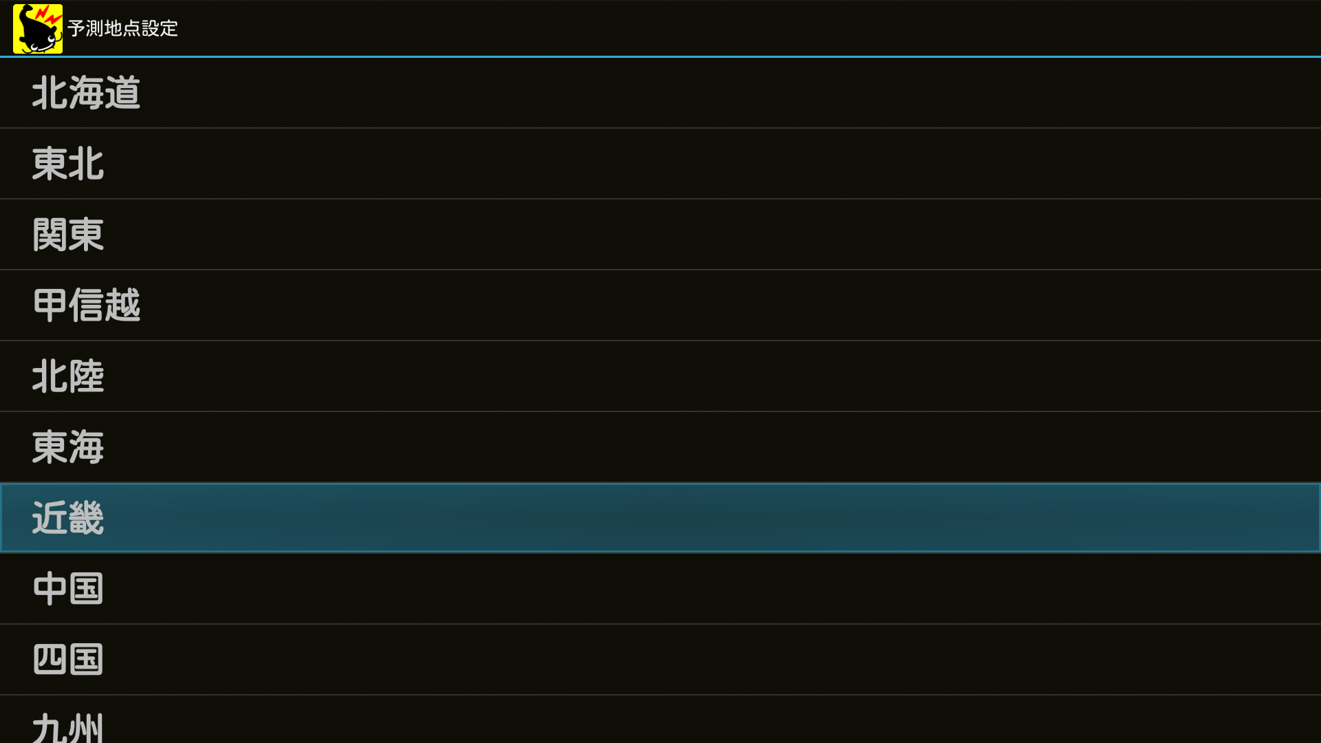 ①設定の一覧から[予測地点]を選択し、リモコンの決定ボタンを押します。