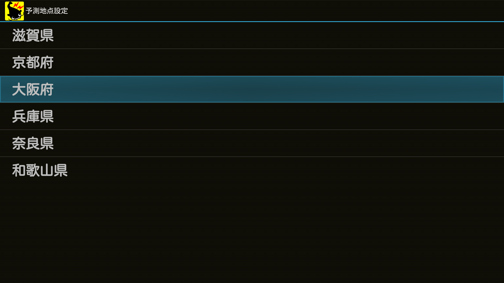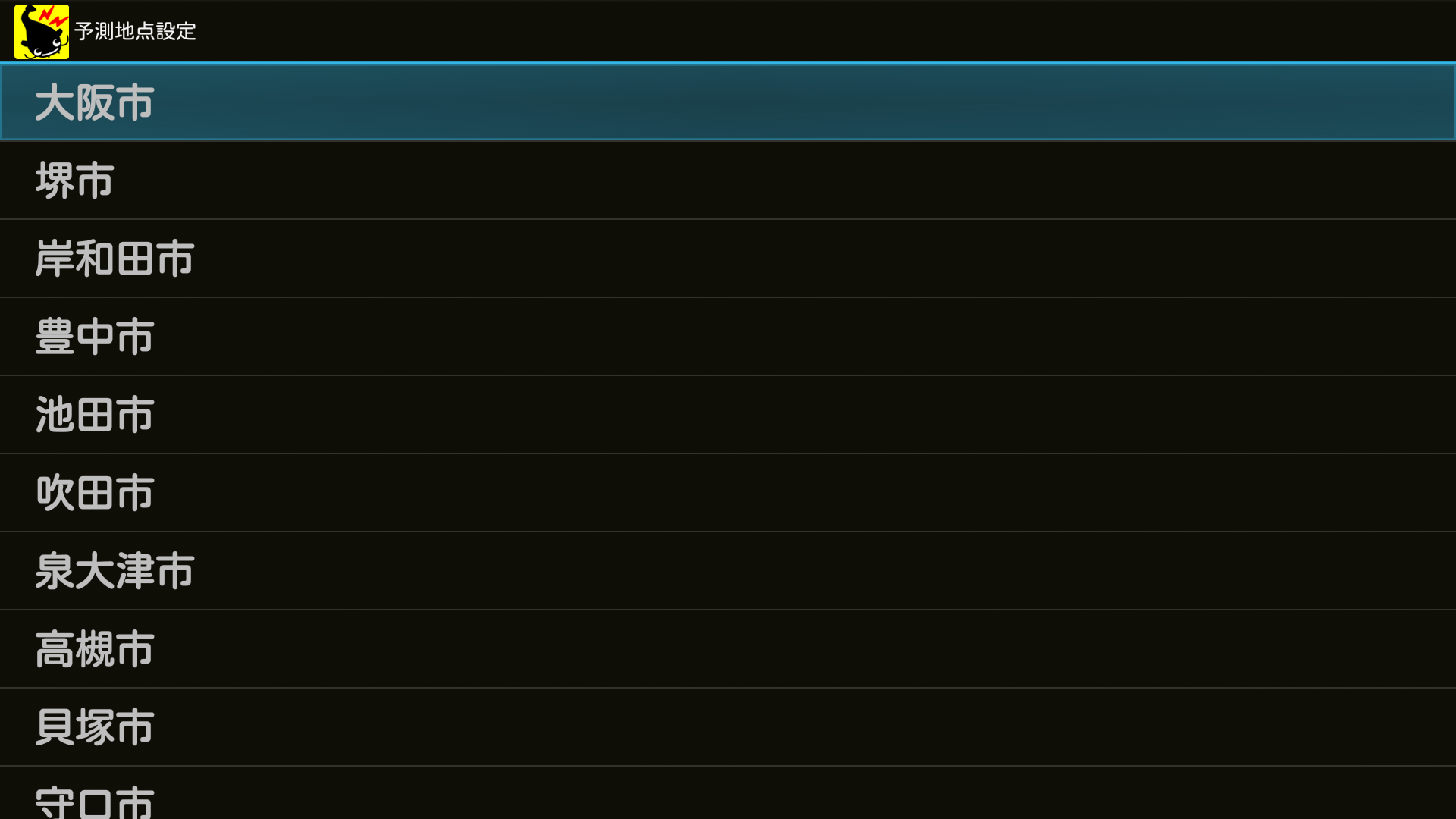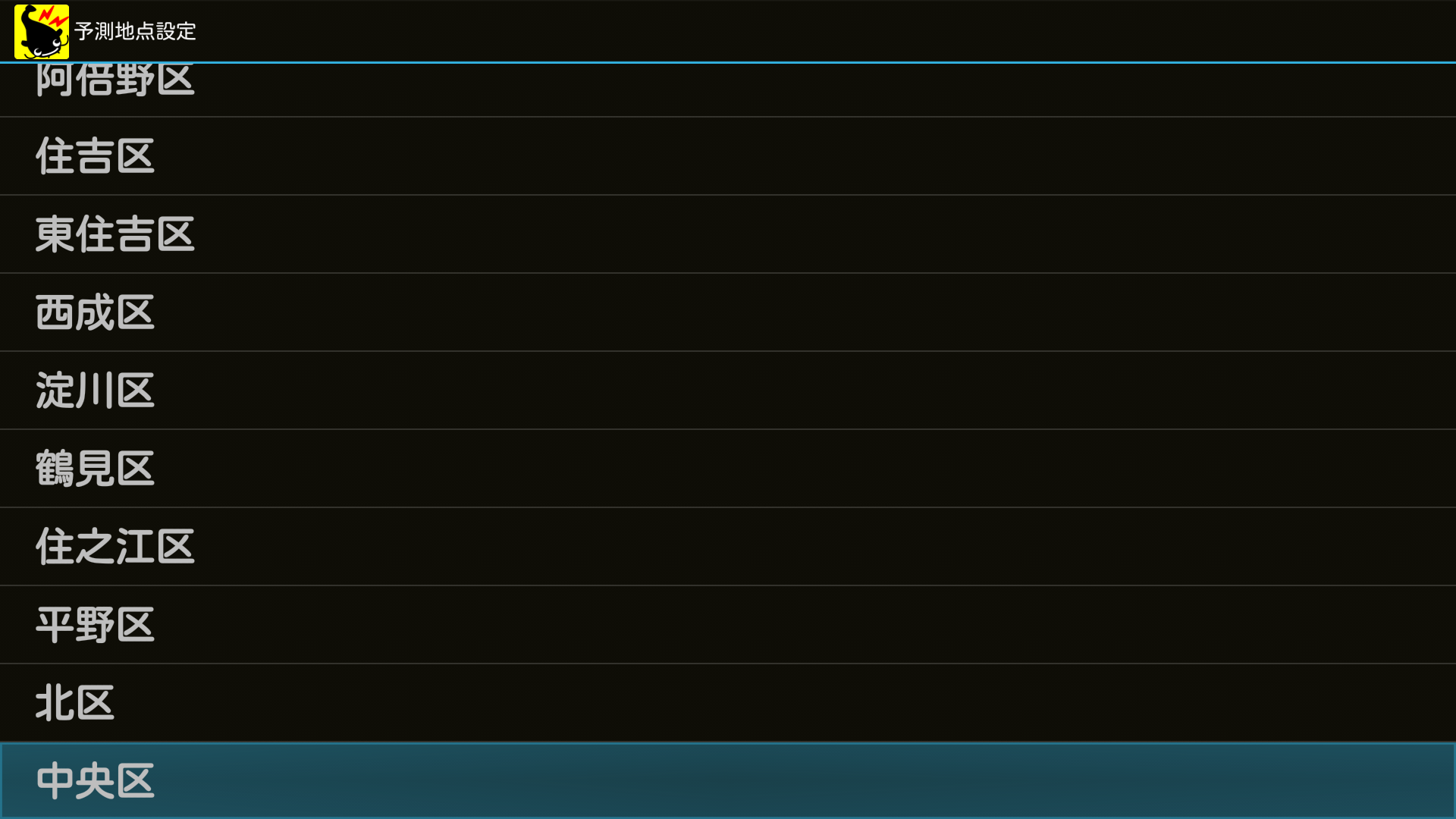 地震が来ることを知りたい地域を設定します。市区町村の単位で1ヶ所、設定することができます。