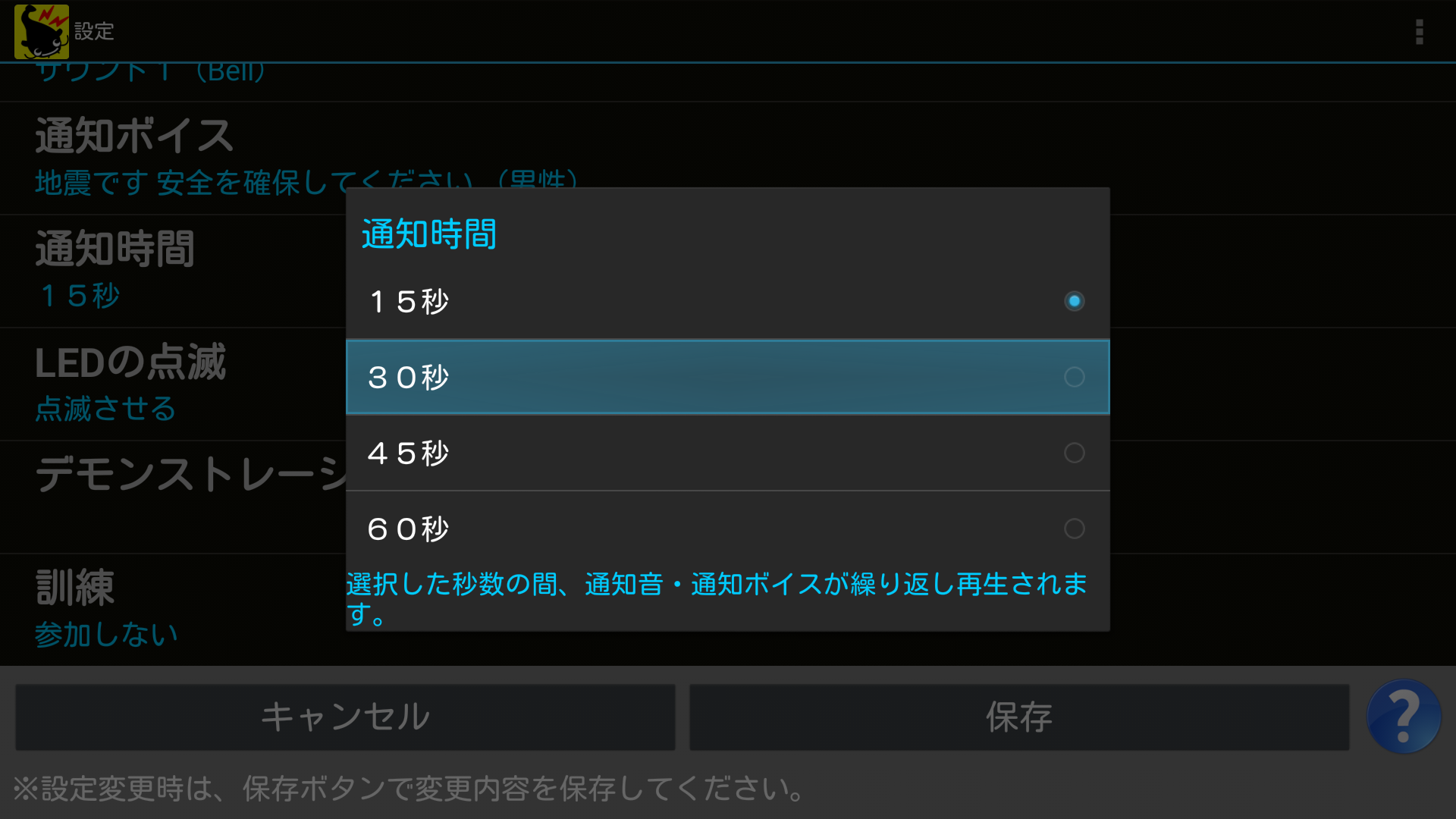 ※初期値は「15秒」です。