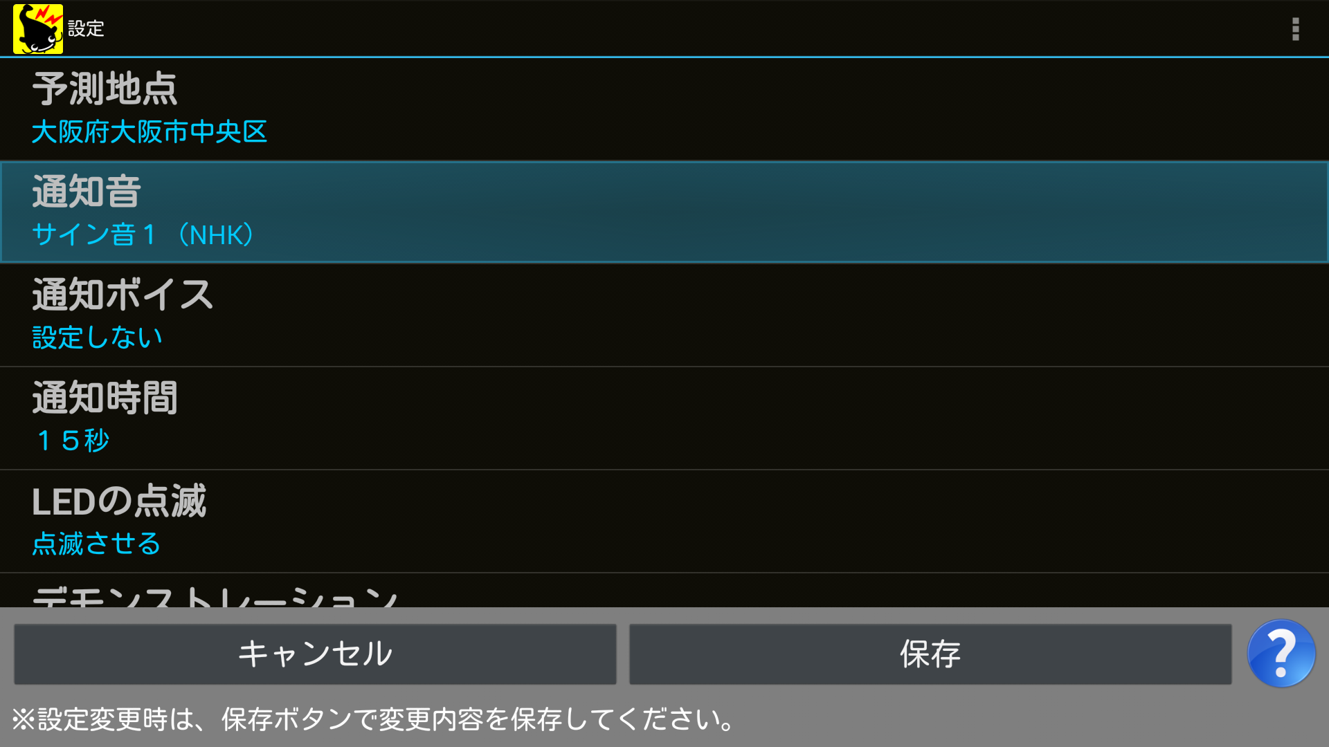 通知震度は、「震度1以上~震度7以上」と「すべて」と「通知しない」の11種類から選ぶことが出来ます。