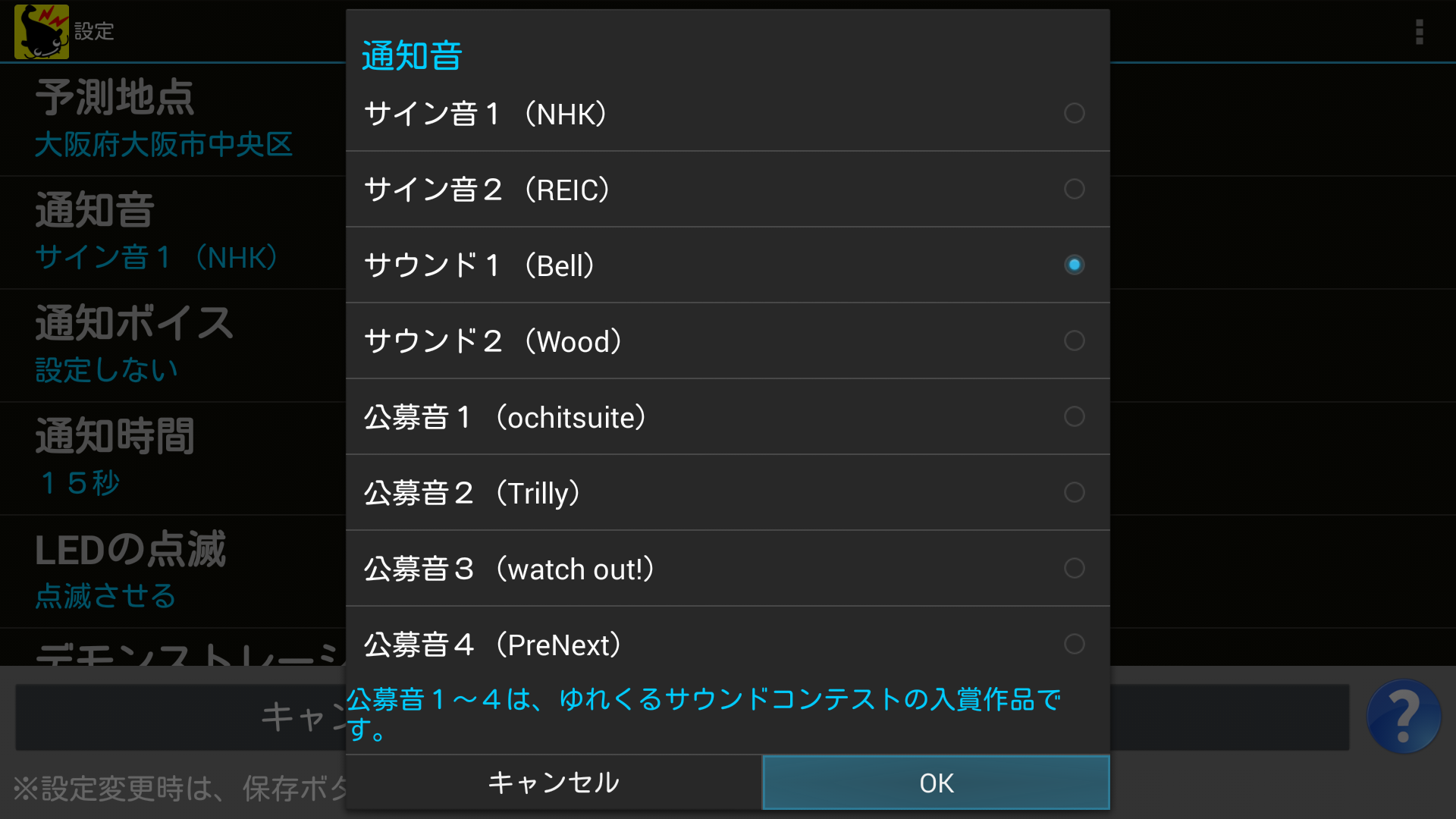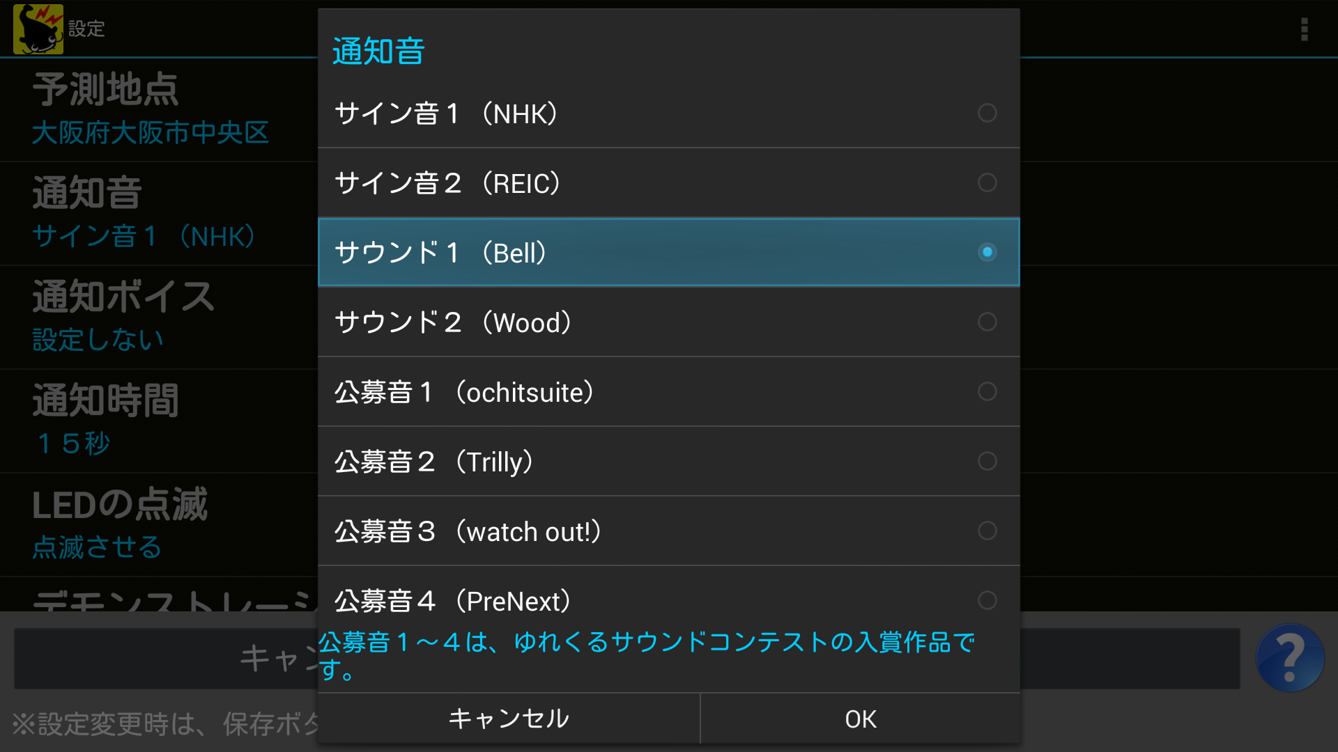 決定ボタンを押すと選択した通知音が、一度再生されます。